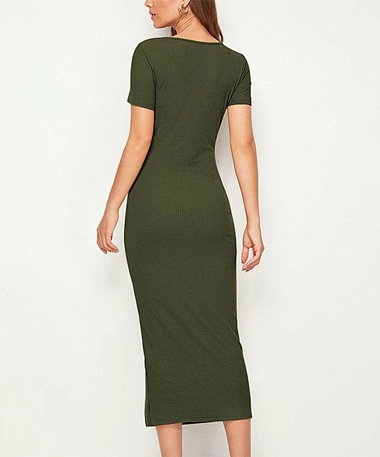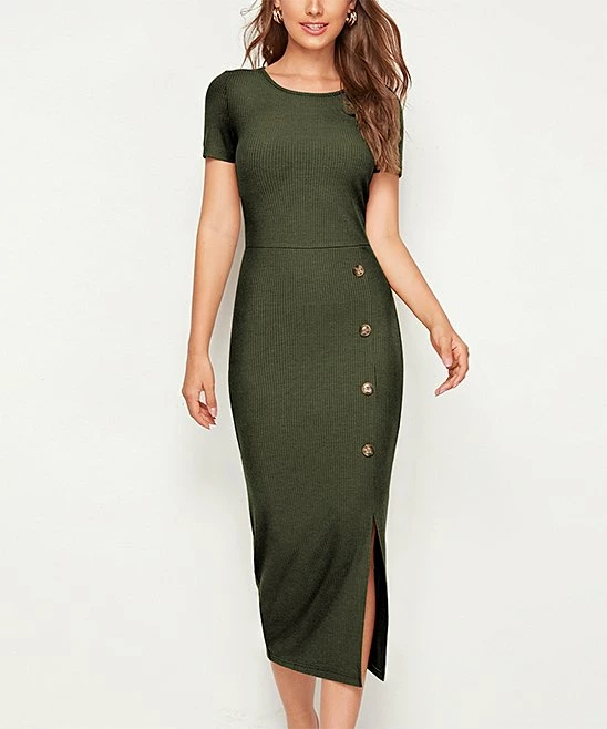 With soft ribbed-knit texture and a flirty side slit, this midi dress brings cozy-chic appeal to your everyday look.