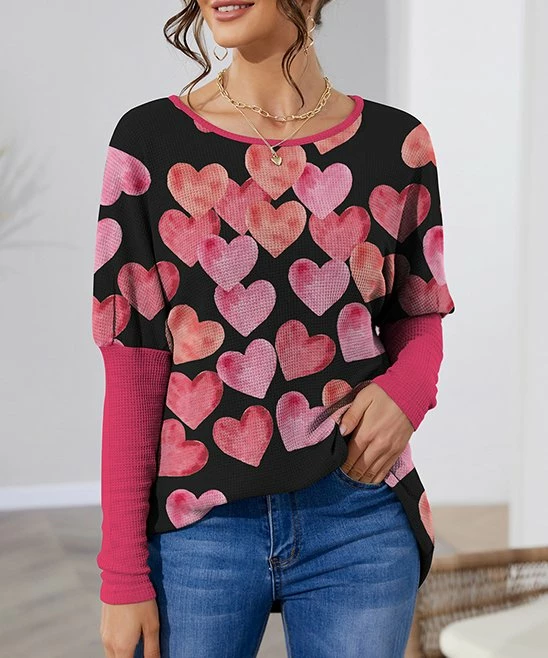 Inflate your sense of whimsical style with this sweetly patterned tunic that features dramatic balloon sleeves. Waffle knit runs from the elbow down, adding textural appeal and cozy warmth to the scoop neck piece.