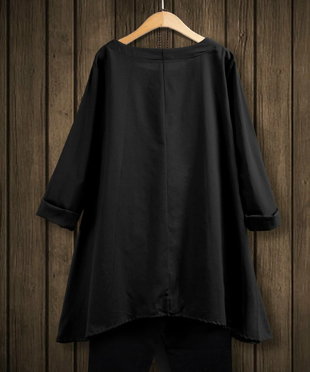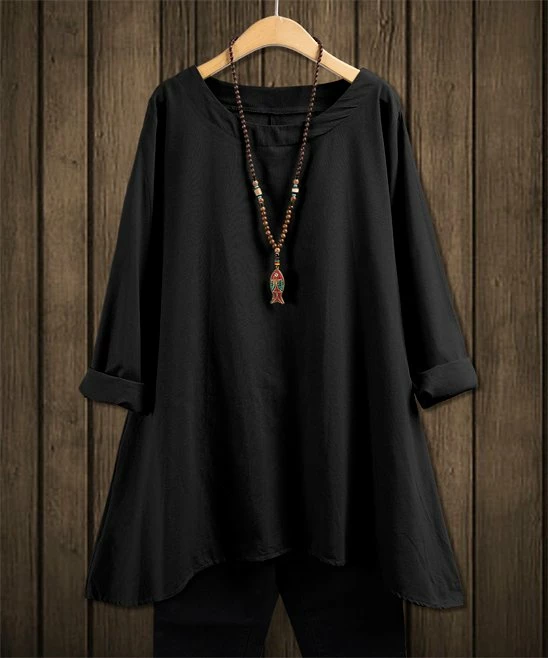 This simple tunic pairs a handkerchief hemline with bohemian style.