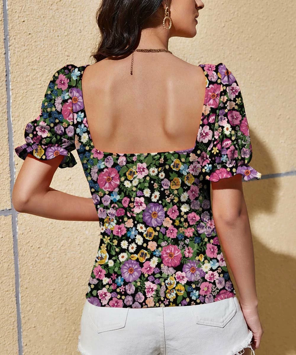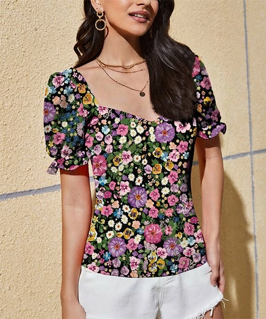 A sweetheart neckline is paired with puff sleeves in this chic top.