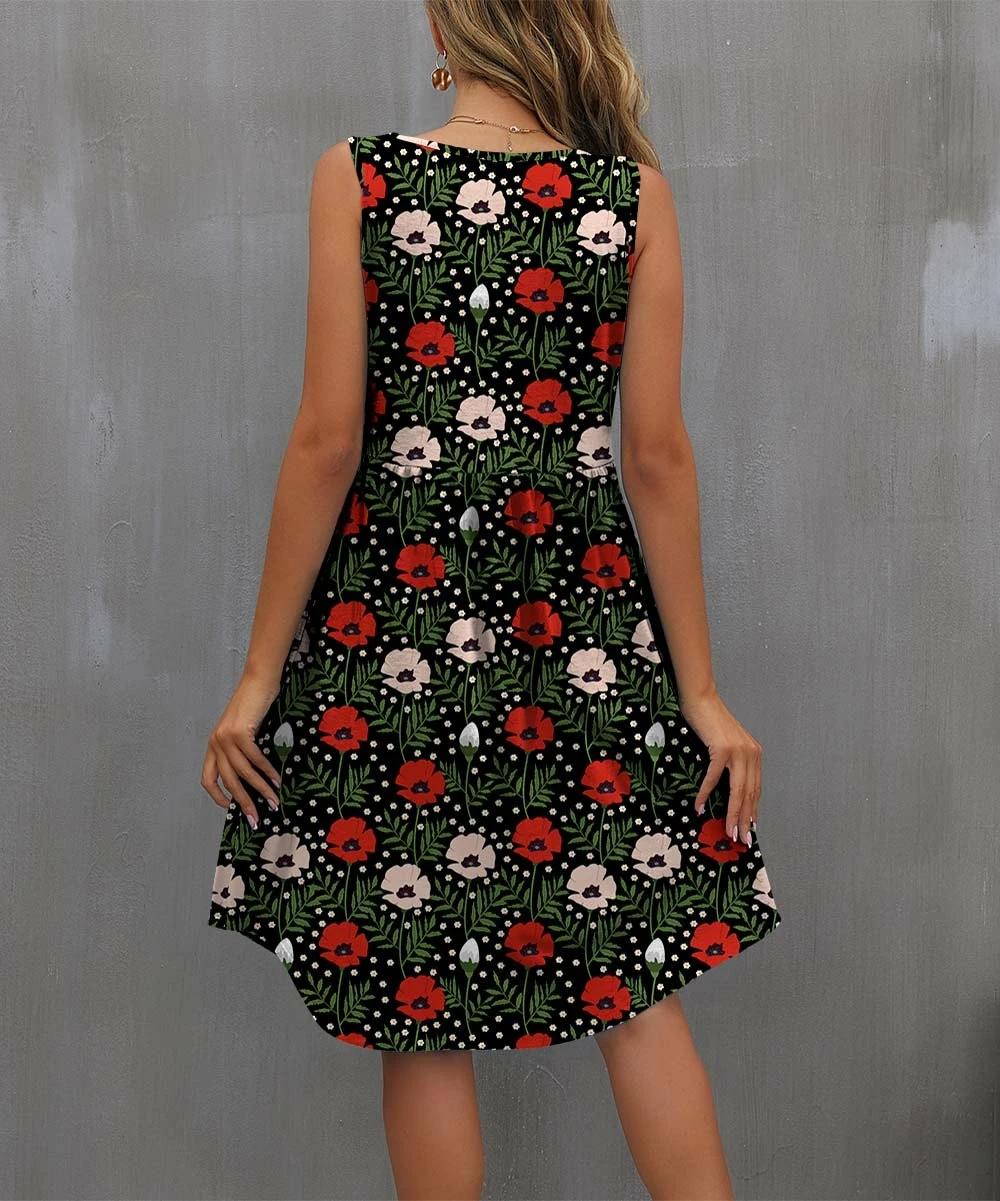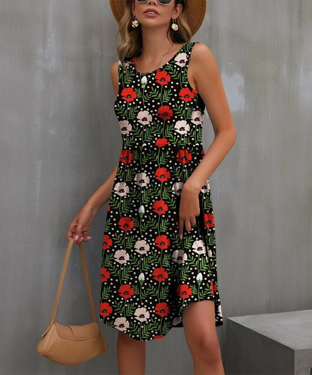 Flow through the day in this graceful sleeveless dress featuring a flattering empire waistline and a hint of comfy stretch.