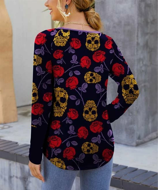 Sporty and relaxed, this raglan top has effortless appeal with a classic cut that’s updated in a mod print.