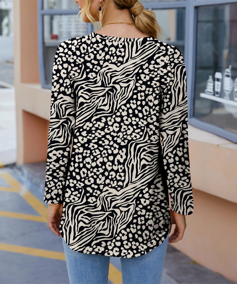 Unleash your wild side in this relaxed-fit tunic featuring mixed animal prints and a hint of stretch.