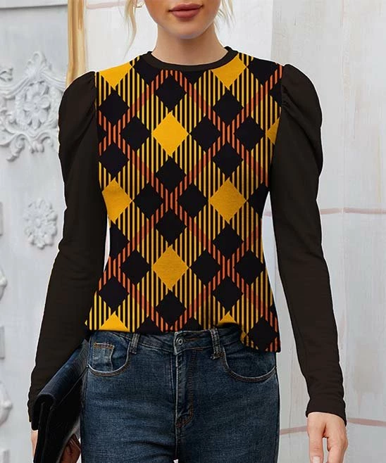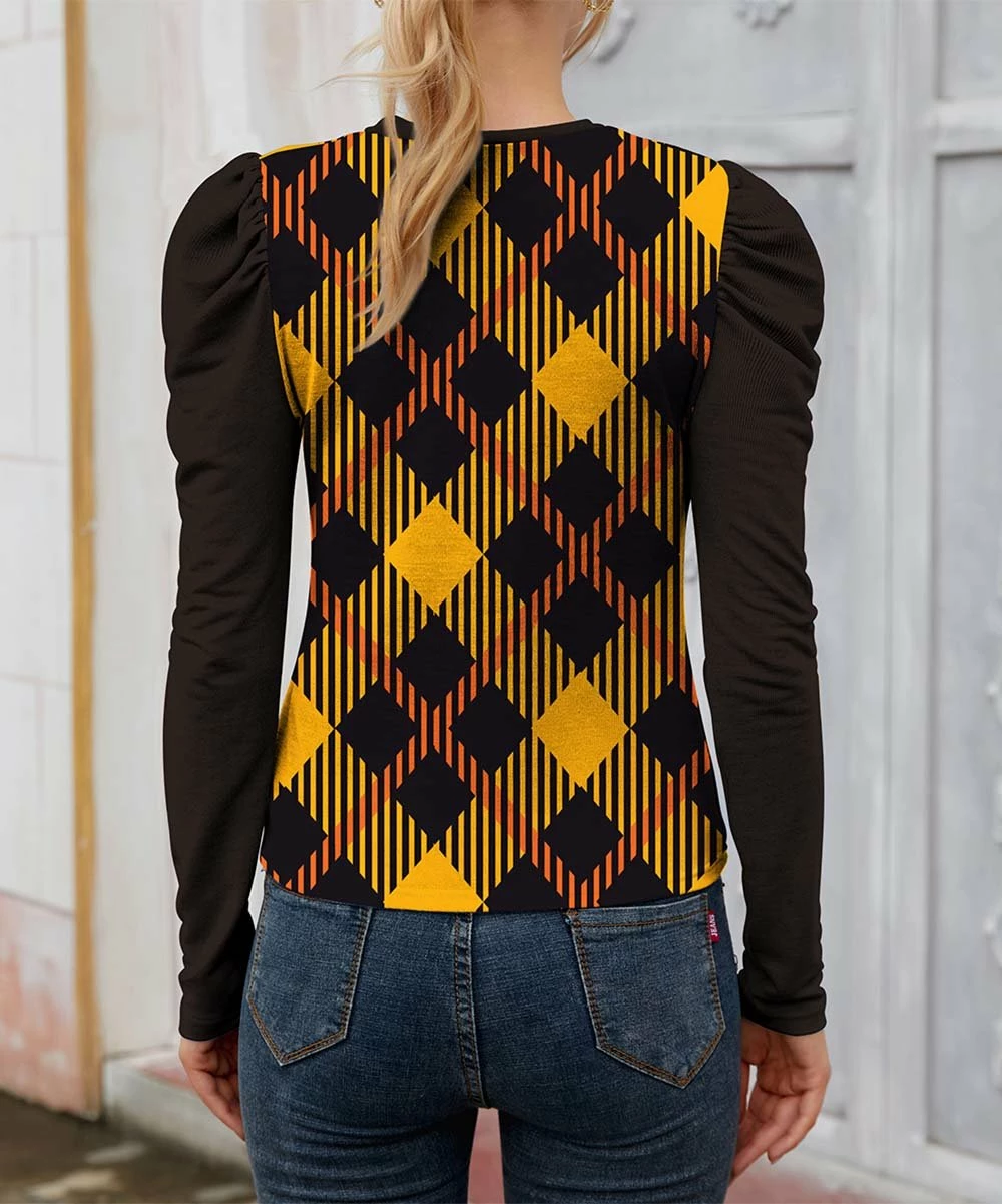 Add a pop of print to your look with this mutton-sleeve top designed with a charming print.