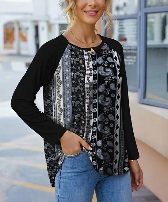 Sporty and relaxed, this raglan tunic has effortless appeal with a classic cut that’s updated in a mod print.