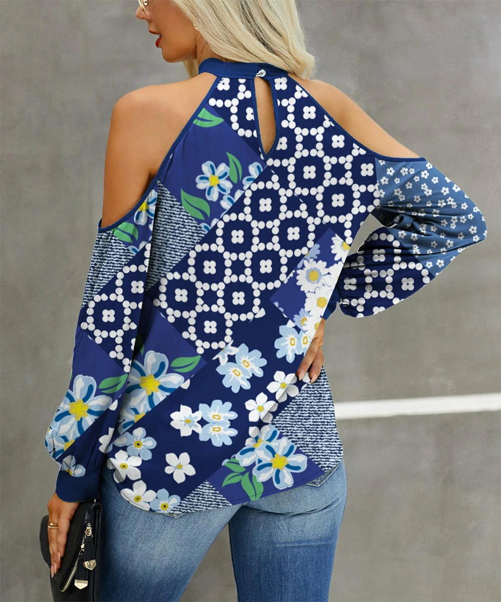 Show off our sun-kissed glow in this wrap top that features cutout shoulders and keyhole back closure.