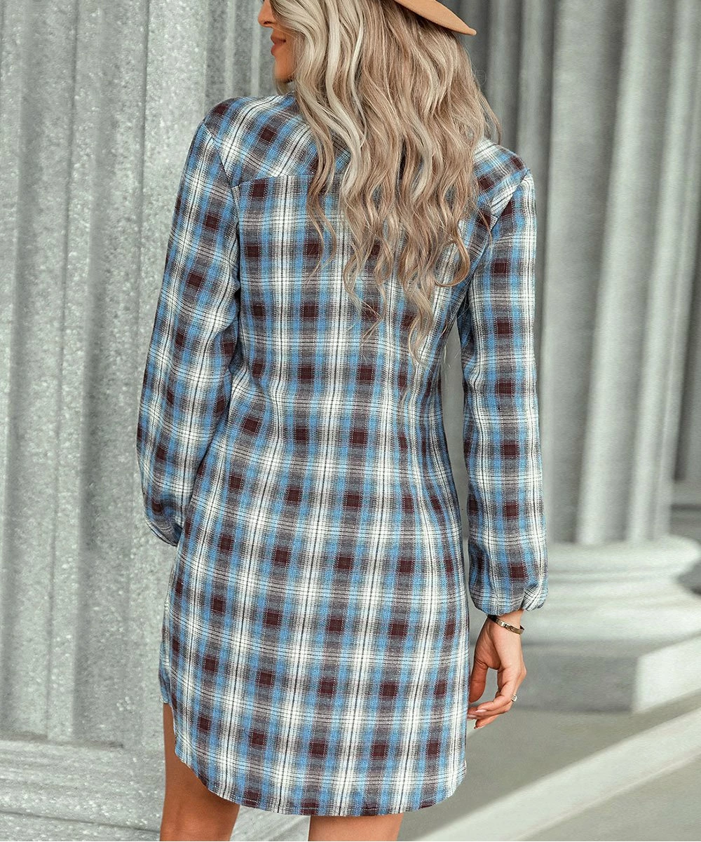 Button-up dress with long sleeves and a form-fitting tie waist.
