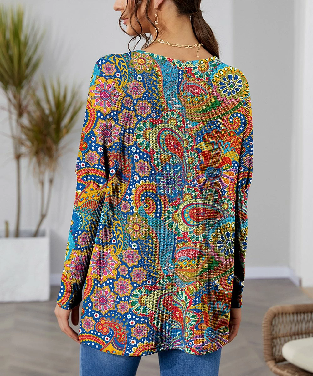 Crafted out of a waffle-knit stretch blend, this adorable tunic boasts a trendy bishop sleeve that adds a touch of flair to your casual-chic everyday wear.