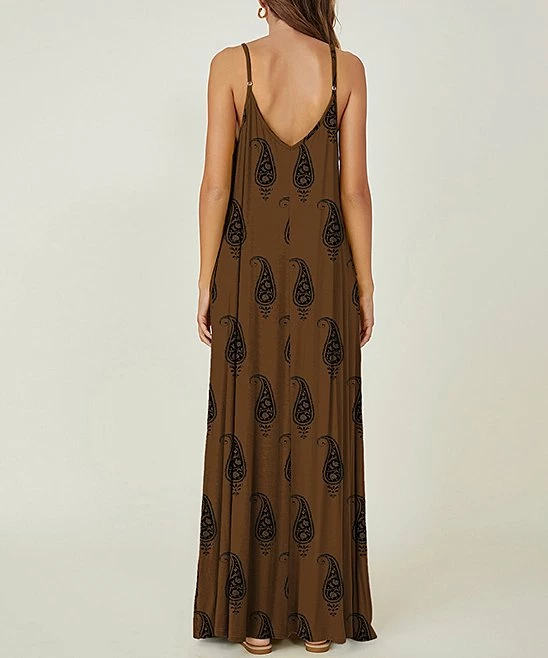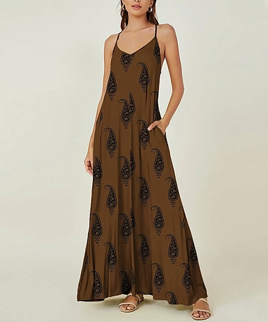 A paisley print adds to the bold look of this stretch-infused maxi.
