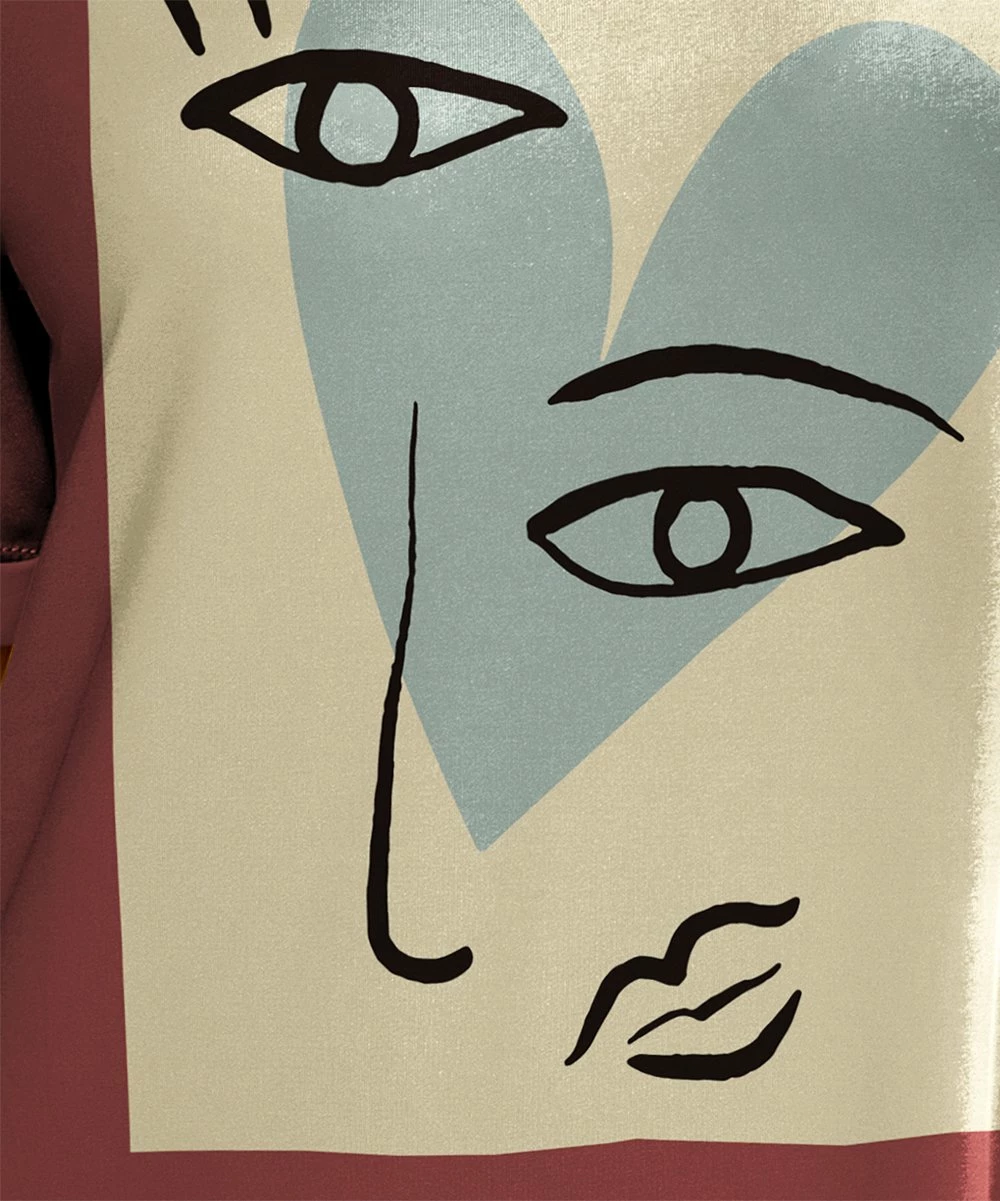 You’ll be a walking work of art in this modern T-shirt dress showcasing a Picasso-esque graphic.
