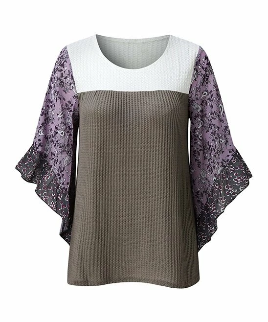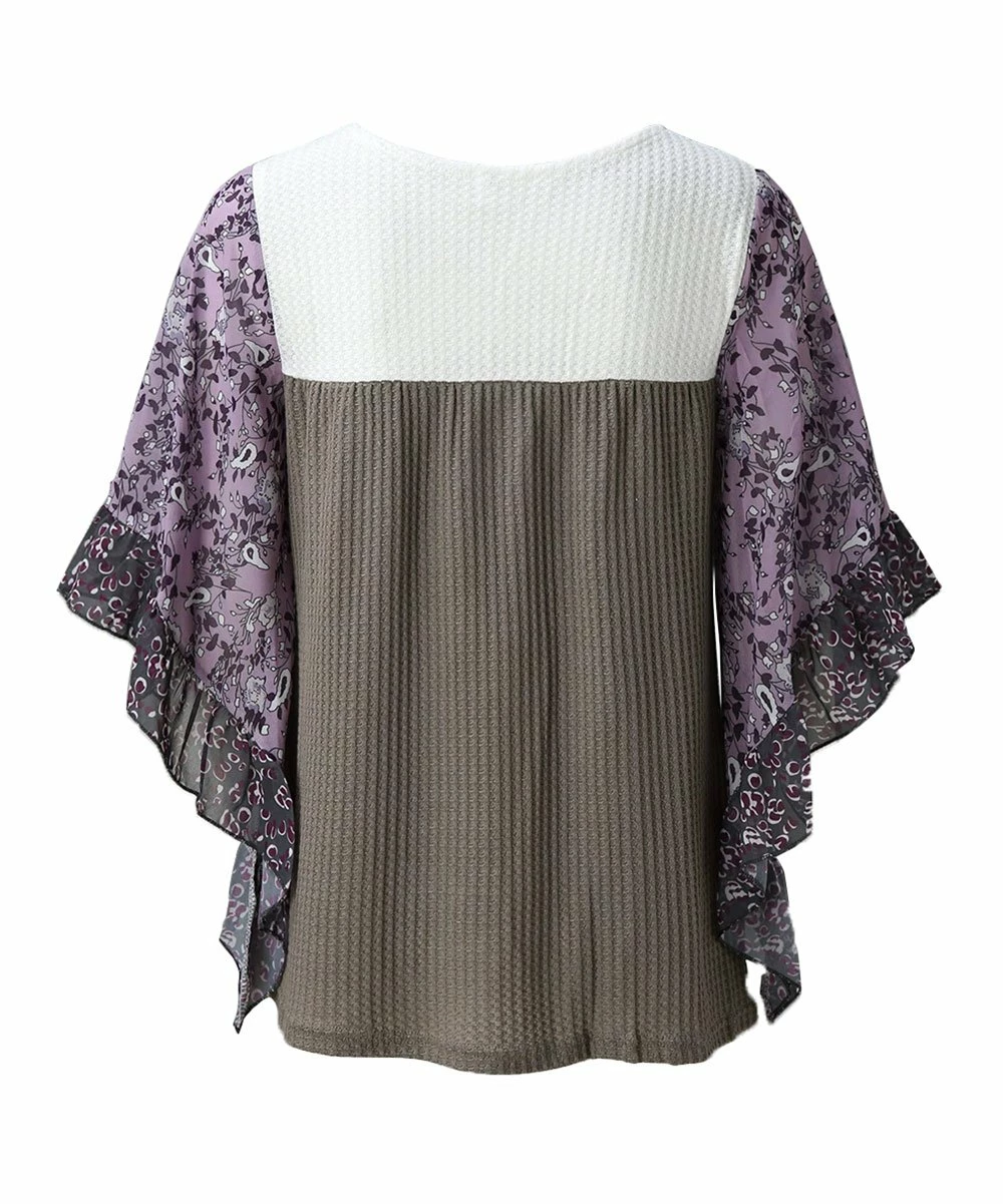 Go for graceful style in this draping dolman top featuring fluttering ruffles adding a fun finish to the sleeves. The soft waffle knit makes it a cozy and comfy look on cooler days.