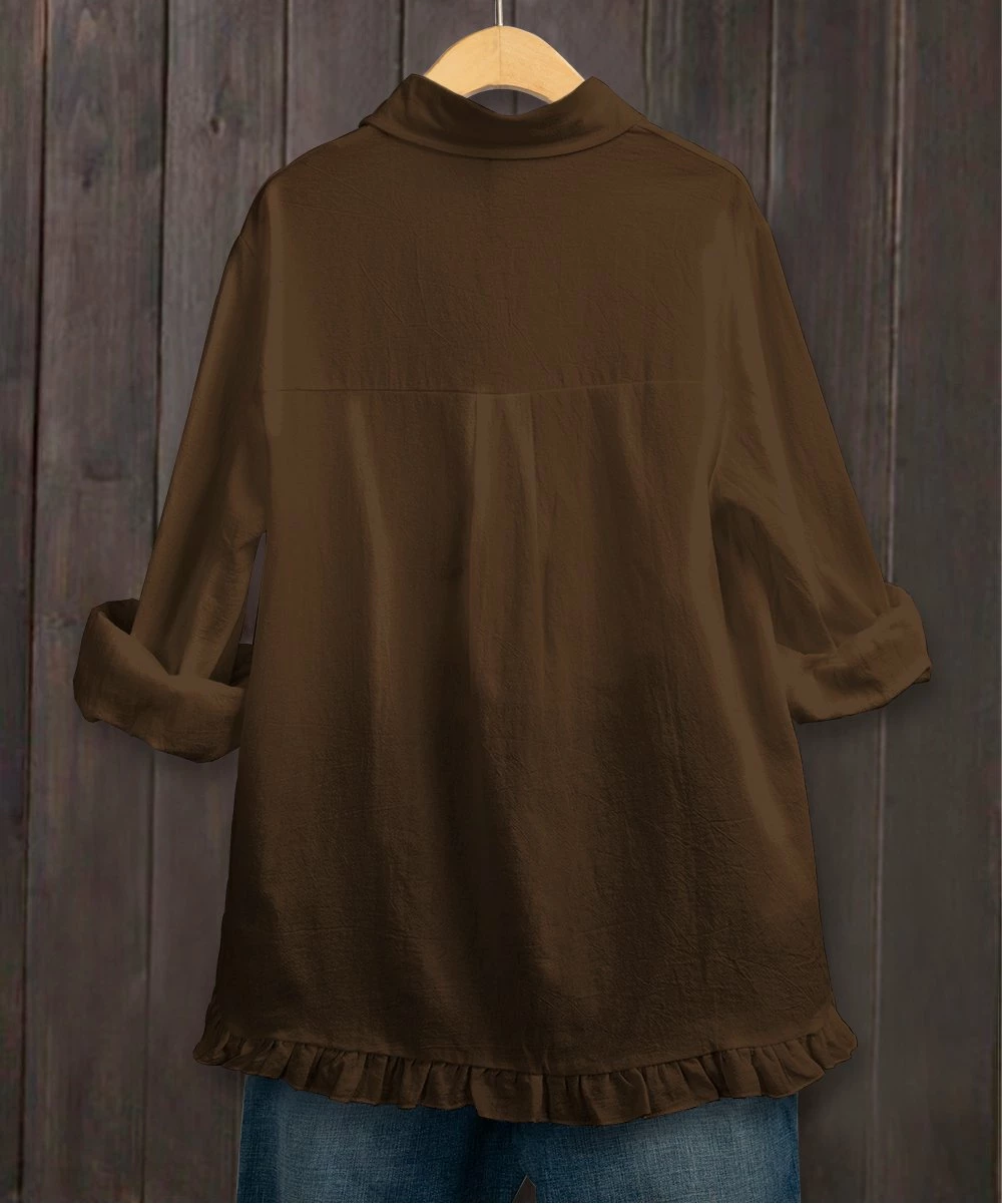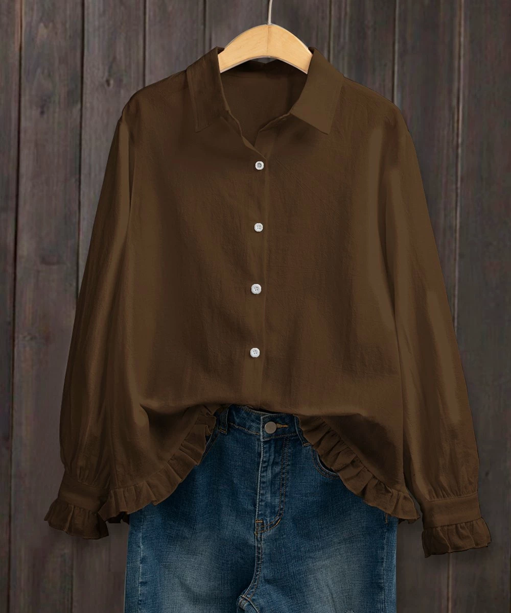 Add a flirty touch to your ensemble with this ruffle-accent button-up crafted from breathable linen and cotton.