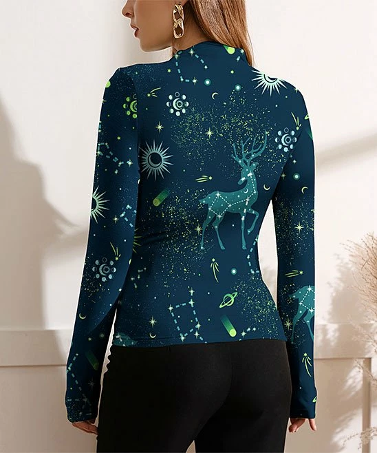 This flattering top is made with a stretchy fabric, ruched front and mock neck.