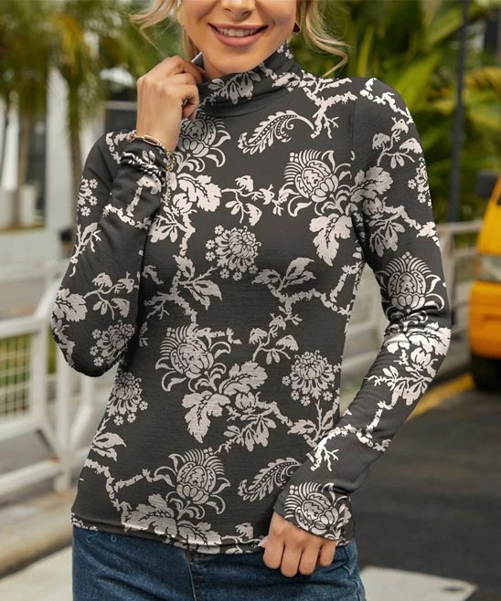 Be bold with your cool-weather selections when you add this long-sleeve turtleneck finished with an allover print to your collection.
