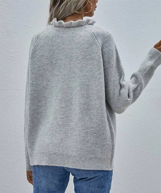 A little warmth with a sweet ruffle makes this long-sleeve sweater an absolute treat when you’re warding off a cold-weather chill.