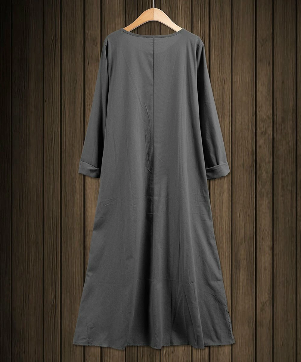 This easy-wearing dress offers a maxi-length skirt and bohemian-inspired style.