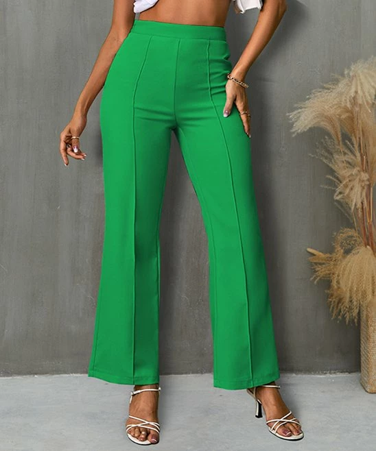 These stretch-infused pants are crafted with an elastic waist and straight-leg design.