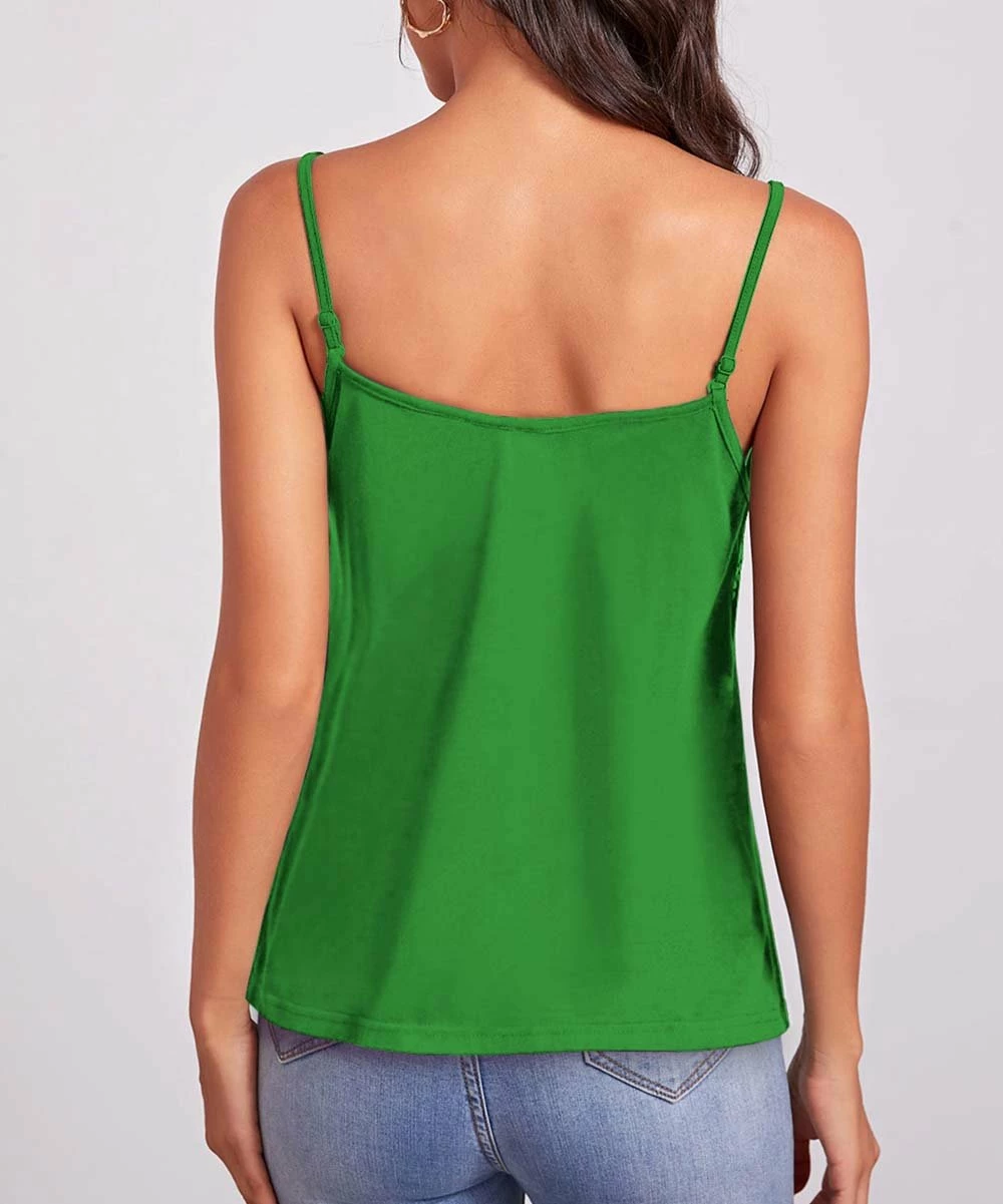 Refresh your mix-and-match essentials with this bright spaghetti strap tank designed with an embroidered neckline and a hint of stretch.