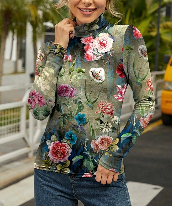 Cheap β IZURIA Blue & Pink Floral Button-Accent Balloon-Sleeve Top – π© Women & Plus π₯°