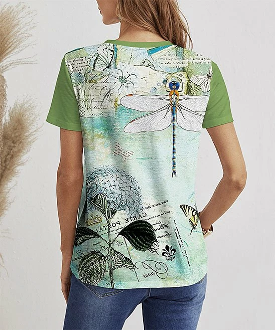 Go for everyday style in this stretch-enhanced tee featuring an eye-catching pattern and v-neckline.