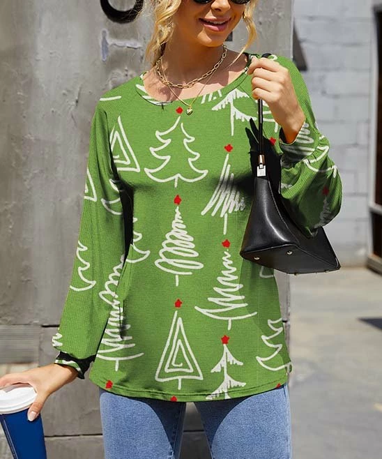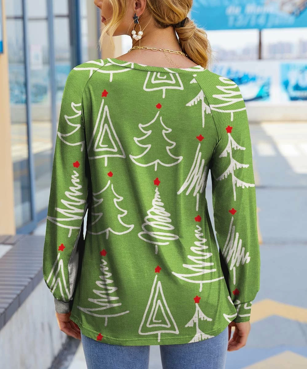 Jingle all the way to the holidays when you wear this simple tunic boasting puffed sleeves and a jolly print.