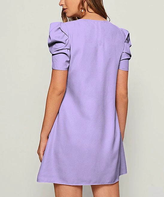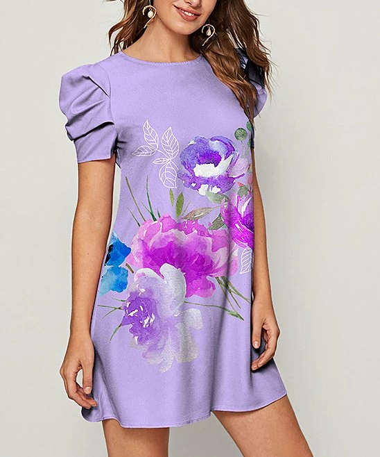 Pretty puff sleeves and a bold pattern give this shift dress an added dose of elegance.
