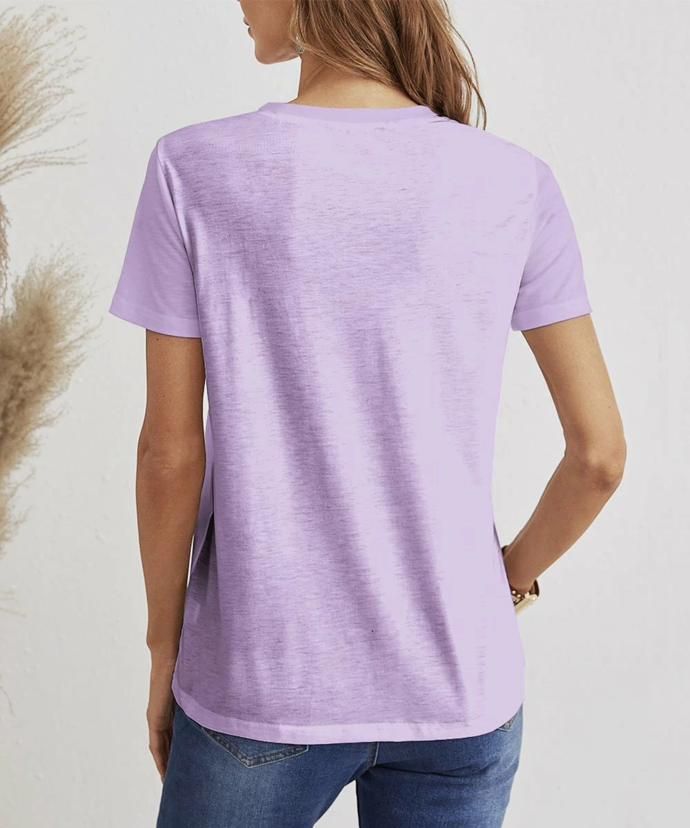 Radiate your cheerful style anytime with this eye-catching top fashioned with a classic v-neckline and lightweight fibers with a hint of stretch.