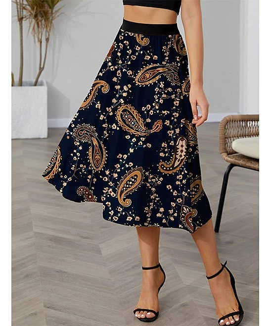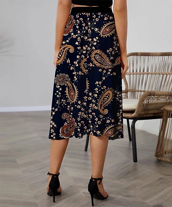 Stretch-enhanced midi skirt featuring an artful arrangement of colors.