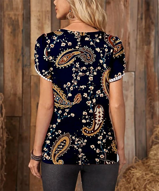 Cheap β IZURIA Blue & Pink Floral Button-Accent Balloon-Sleeve Top – π© Women & Plus π₯°