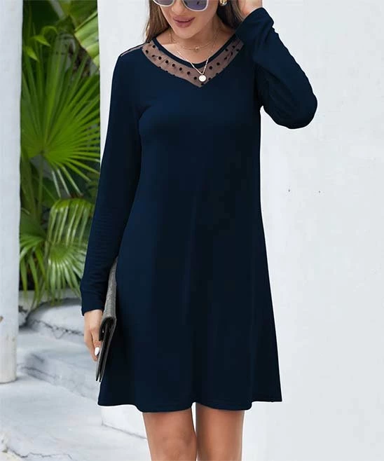 Accented with a sheer panel on the neckline, this shift dress adds effortless poise to your look. Stretch-enhanced fabric for comfort.