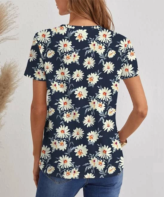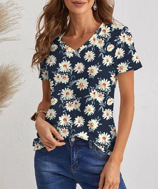 This classic V-neck tee is elevated with a floral print and stretch-enhanced design.