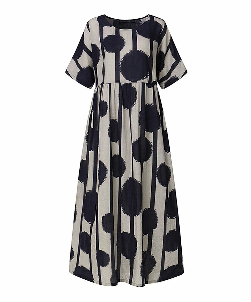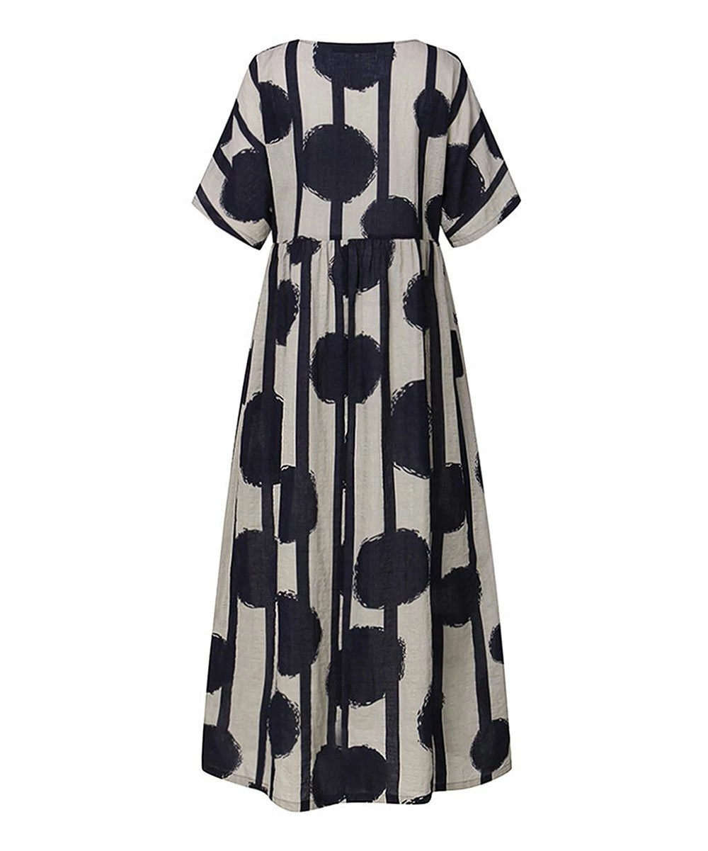 This breathable maxi dress features a bold two-tone print and flattering empire waist.