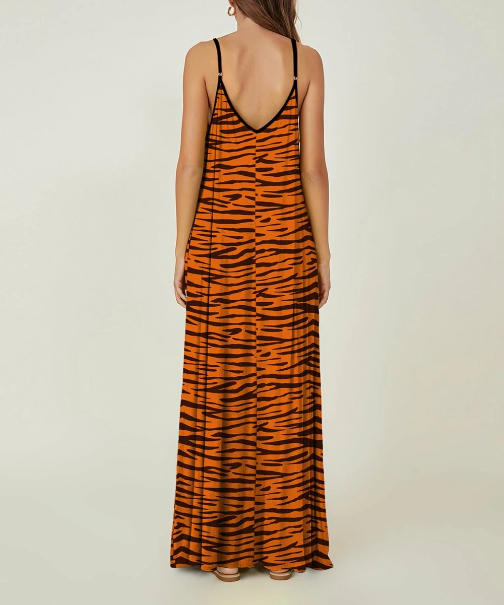 A fierce addition to your warm-weather wardrobe, this sleeveless maxi features zebra-print patterning and stretchy knit fabric for wildly comfortable style you can dress up with heels or down with flats.