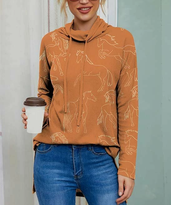 Keep cozy as you slip on this soft waffle-knit top featuring a cowl neckline for extra warmth. The bold pattern enlivens your look, and a hi-low hem gives it trend-right charm.