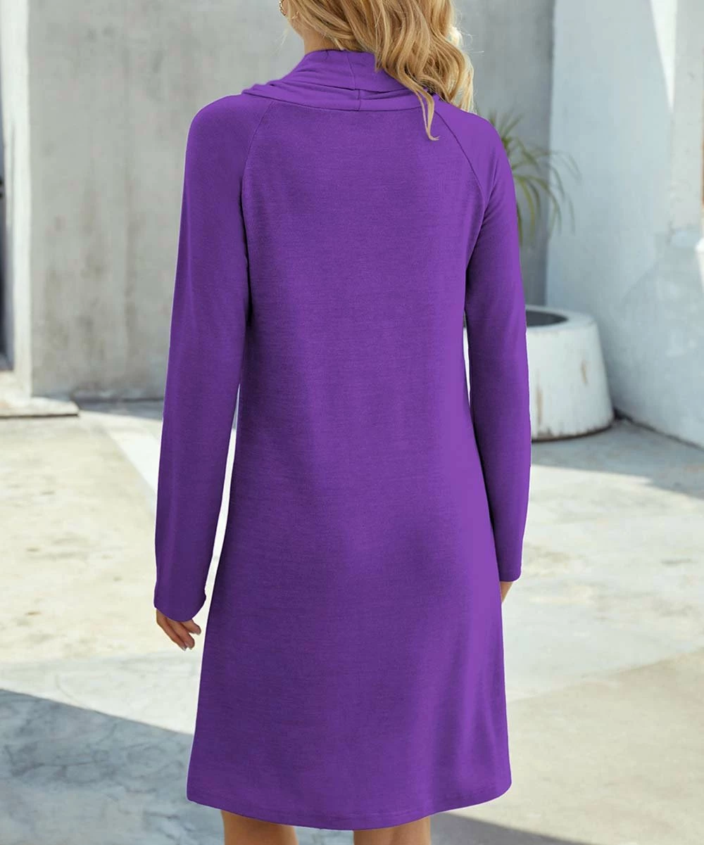Look eerie-sistible in this long-sleeve shift dress made with stretch-infused material and featuring a cowl neckline.