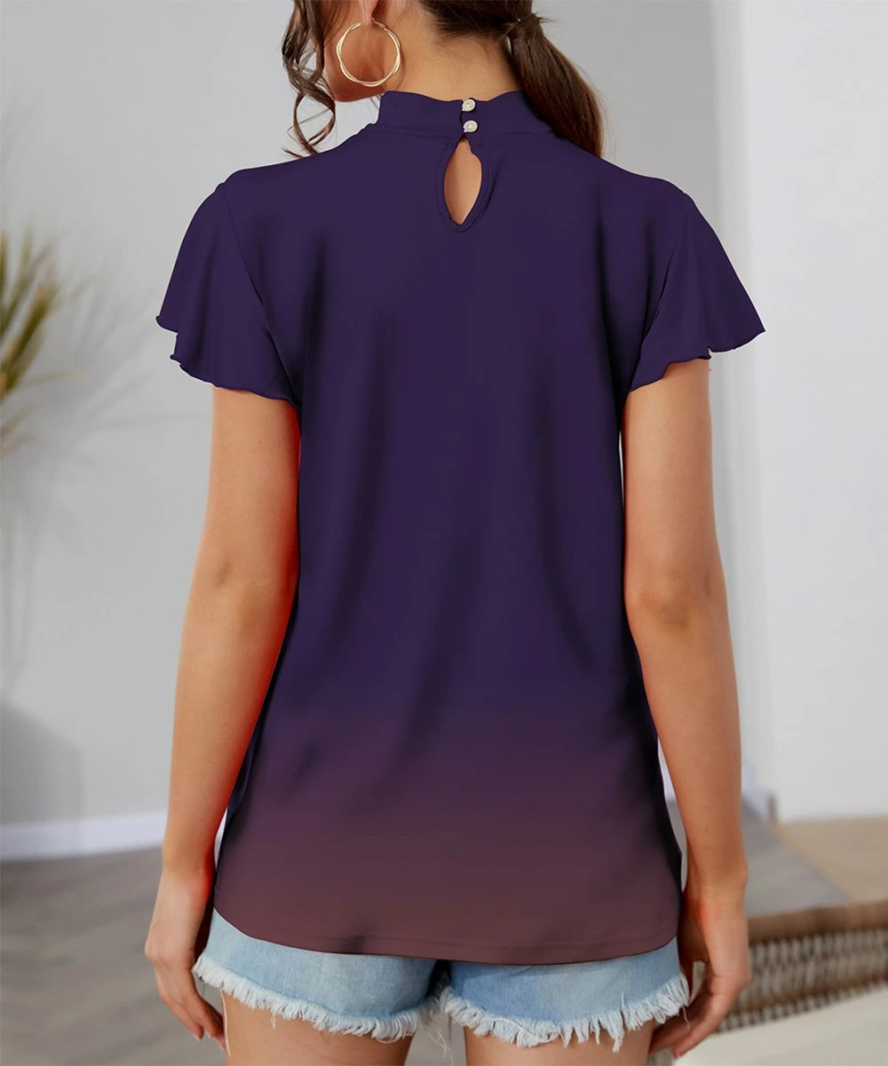 Define your creepy couture with the bold look of this flutter-sleeve top finished with a mock neckline and a hint of stretch fabric.