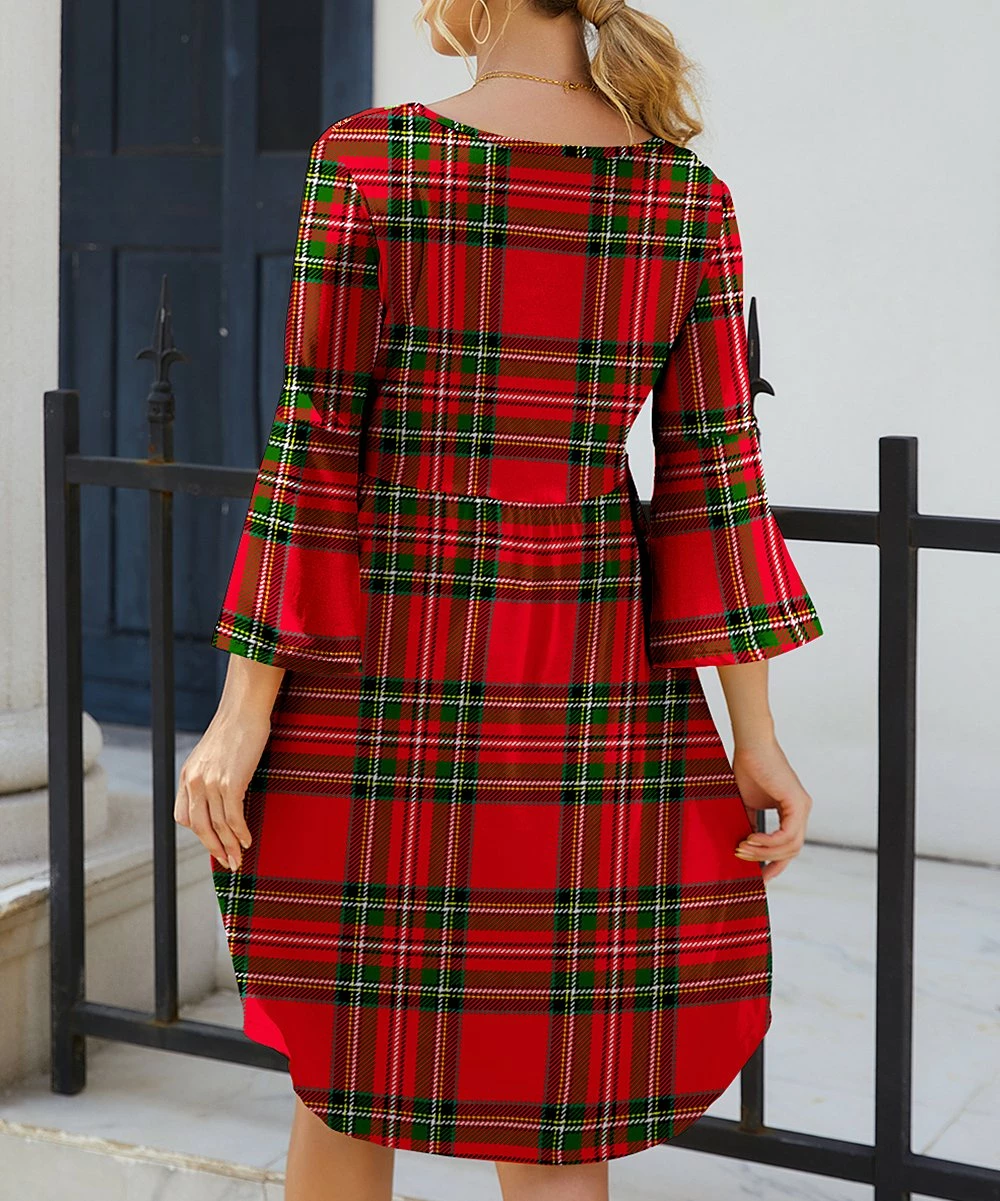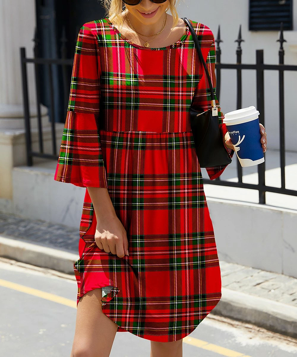 Classic plaid combines with vintage-inspired bell sleeves and an A-line shape in this timeless dress.