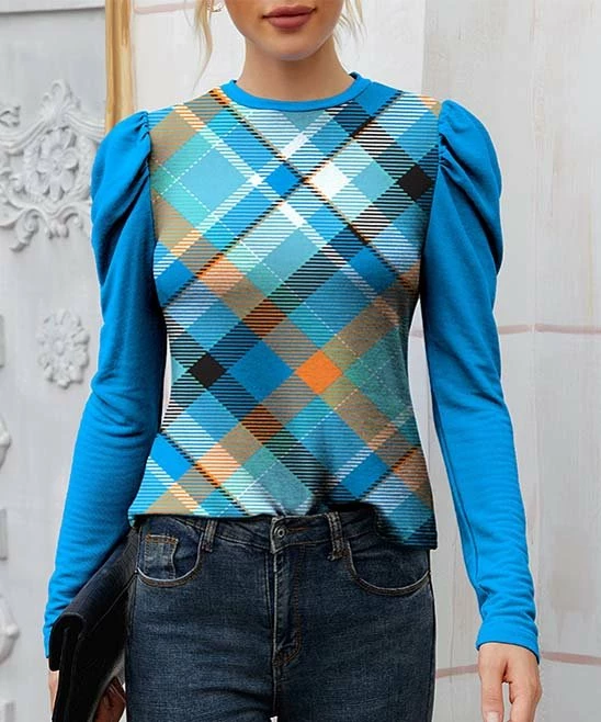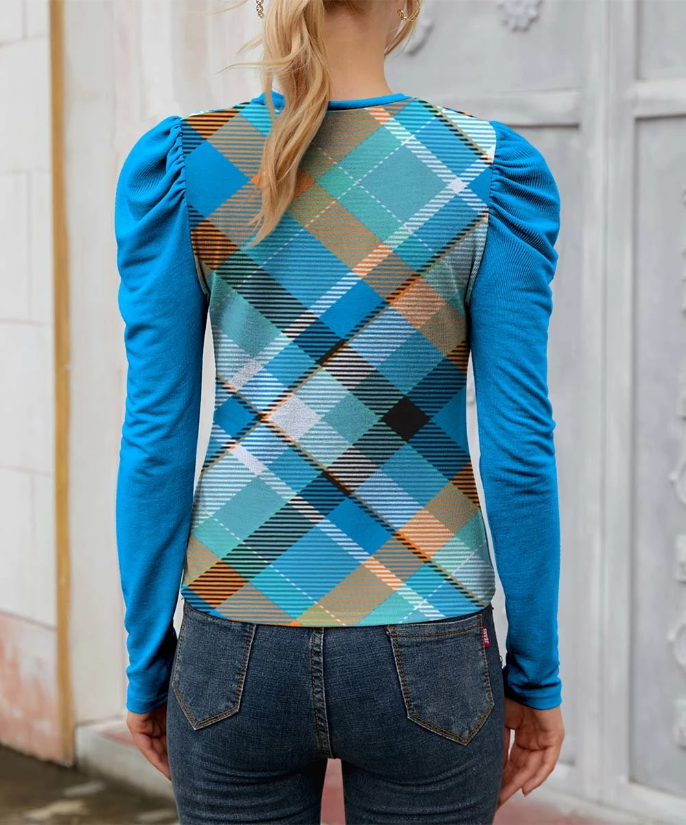 Add a pop of print to your look with this mutton-sleeve top designed with a charming print.