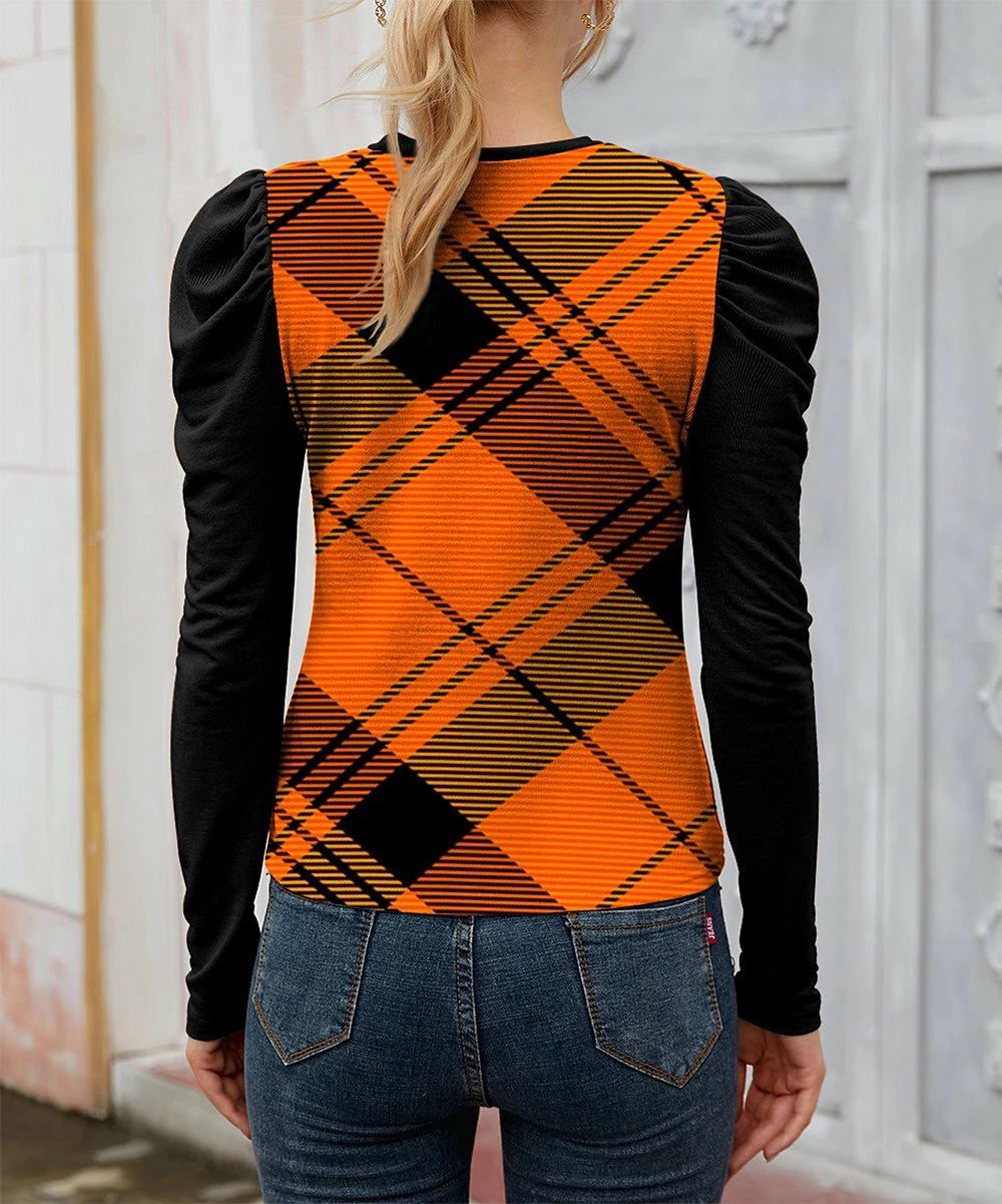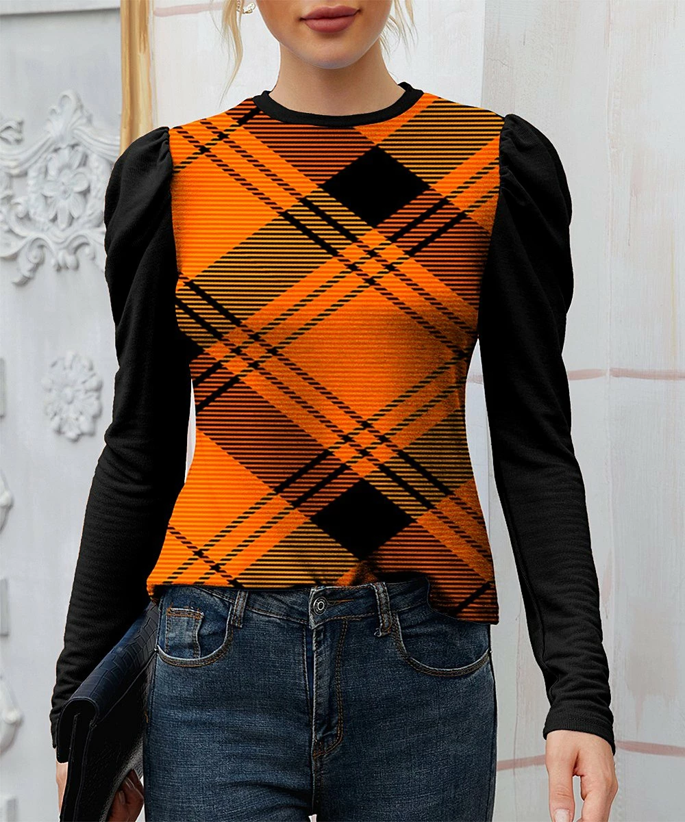 Bold colors and puff sleeves add intrigue to this stretch-blend top.