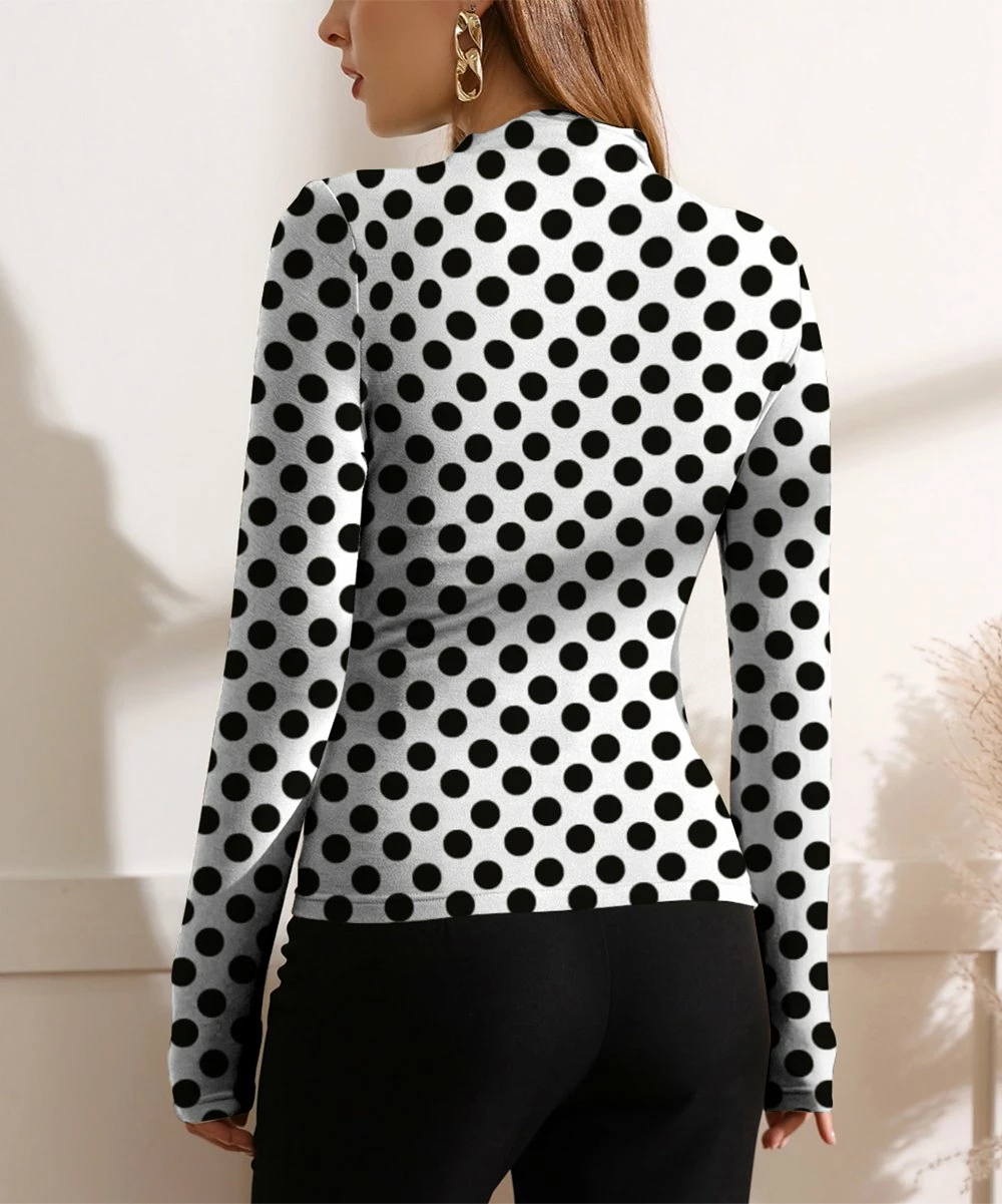 Ruching at the shoulder creates soft cross-body pleats on this fitted high-neck top.