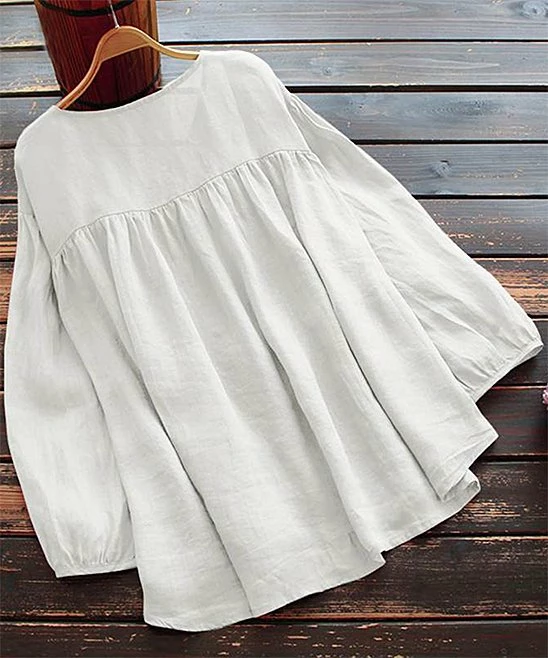Drawstrings at the bust and waist put you in charge of the fit of this long-sleeve button-up peasant top.
