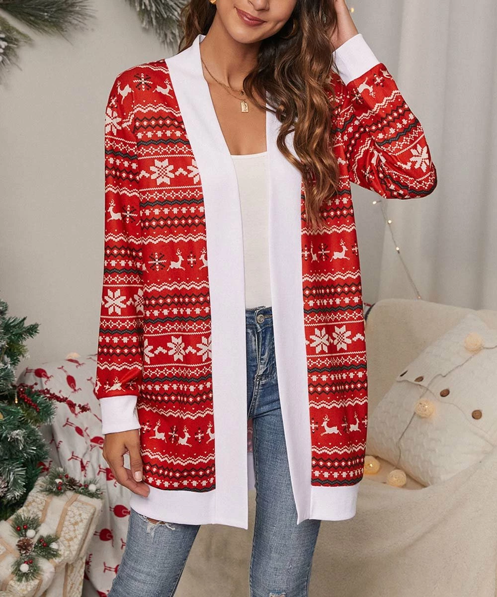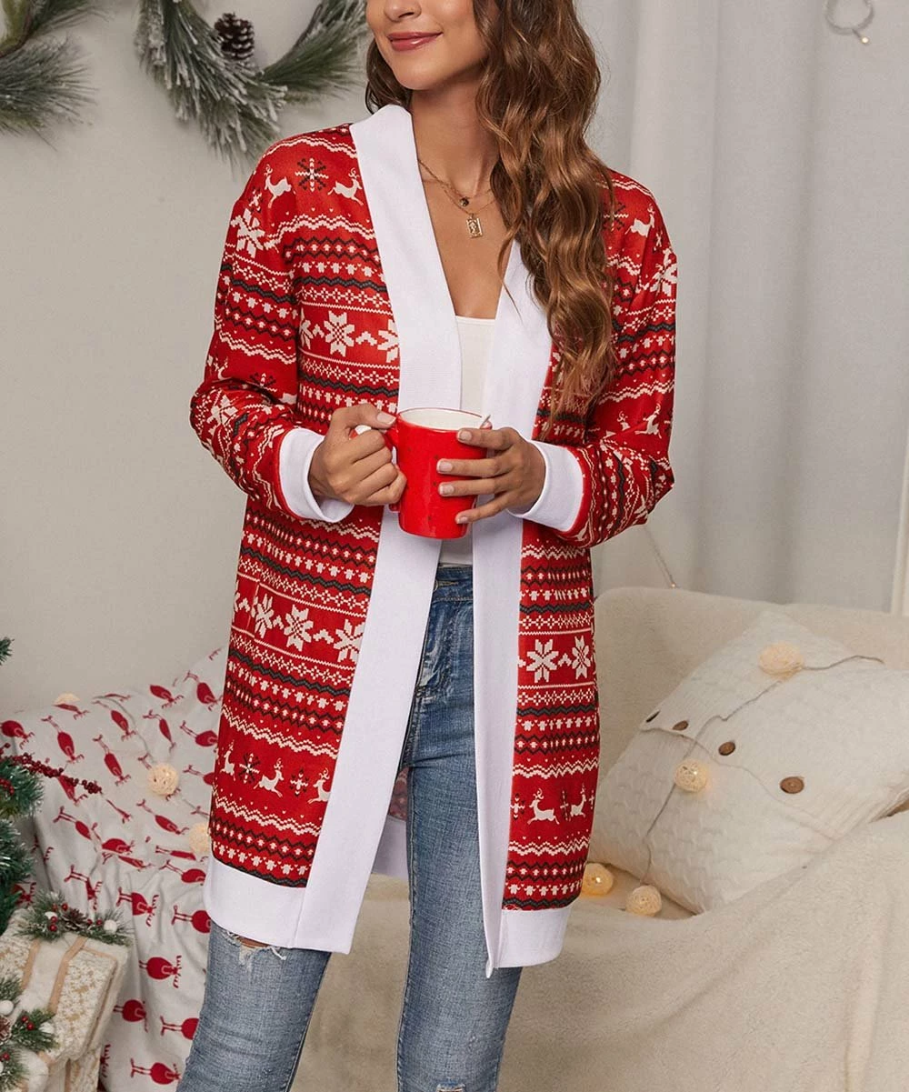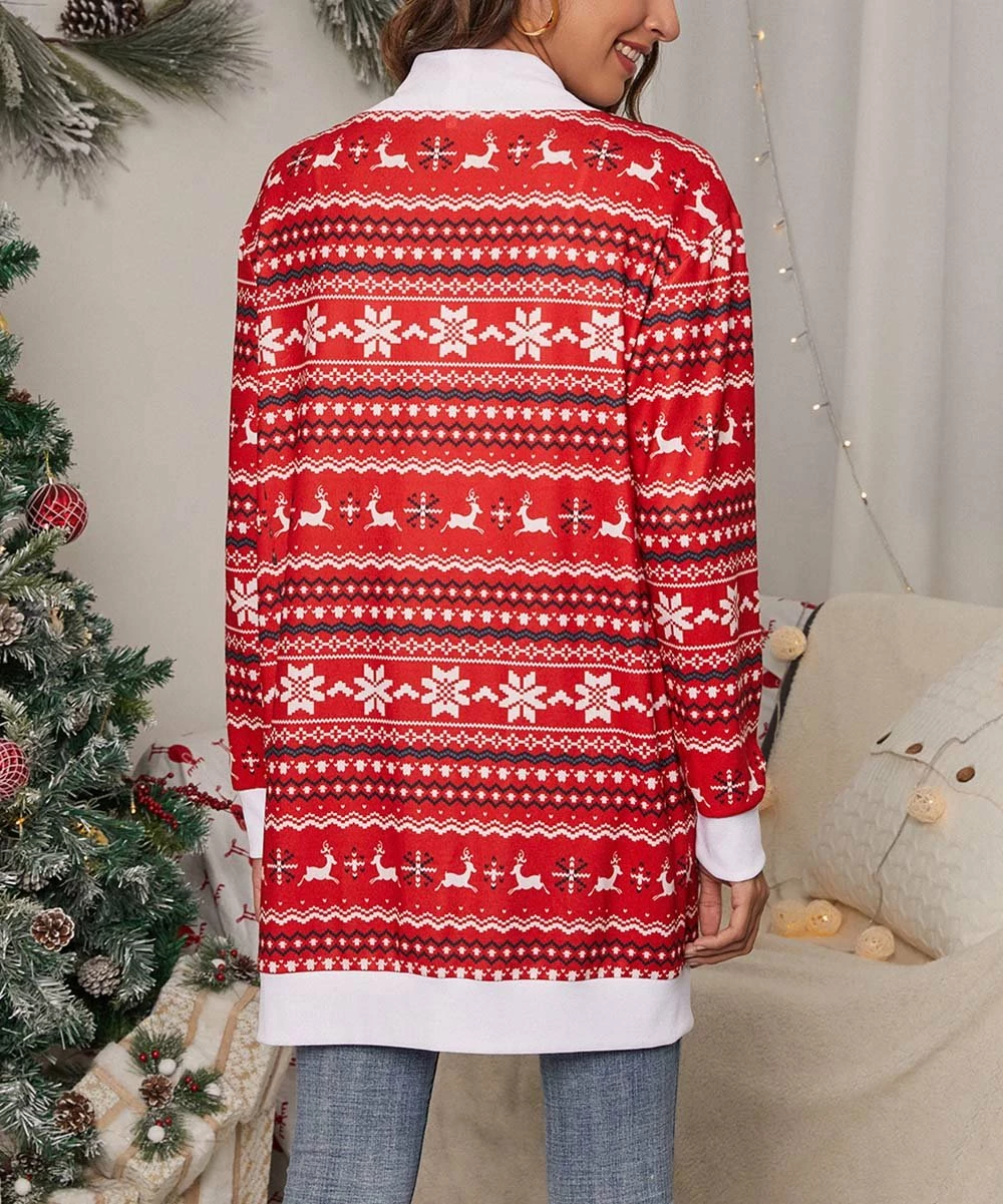 Merry flair takes shape when you add this festive geometric cardigan to your ensembles. A stretchy cotton blend lets you layer in comfort.