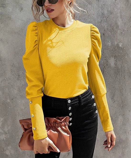 Bring old-world appeal to your look with this stretch-infused top featuring mutton sleeves with button details.