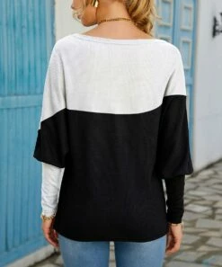 Budget β IZURIA Black & White Color Block Dolman-Sleeve Waffle-Knit Boatneck Top – π© Women β