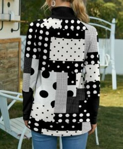 Budget β IZURIA Black & White Polka Dot Patchwork Shoulder-Zip Turtleneck Top – π© Women β