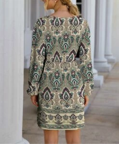Buy π₯° IZURIA Beige & Green Damask Long Sleeve Empire-Waist Surplice π Dress – π© Women π