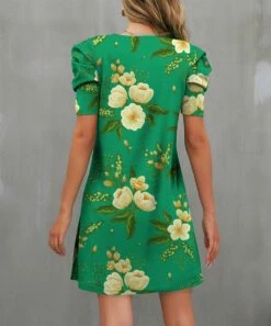 Cheapest π IZURIA Green & Yellow Floral Puff-Sleeve Shift π Dress – π© Women & Plus β¨