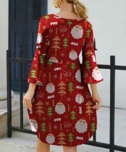 Coupon β¨ IZURIA Red Santa Tree Three-Quarter Bell-Sleeve Empire-Waist π Dress – π© Women π