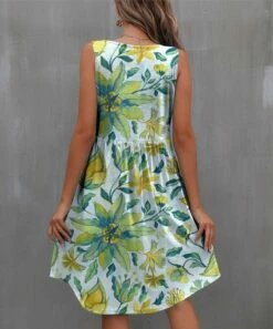 Coupon π IZURIA Blue & Yellow Floral Sleeveless Empire-Waist π Dress – π© Women π