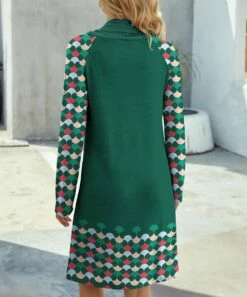 New π₯ IZURIA Green & Red Geometric Contrast-Sleeve Cowl Neck Shift π Dress – π© Women π